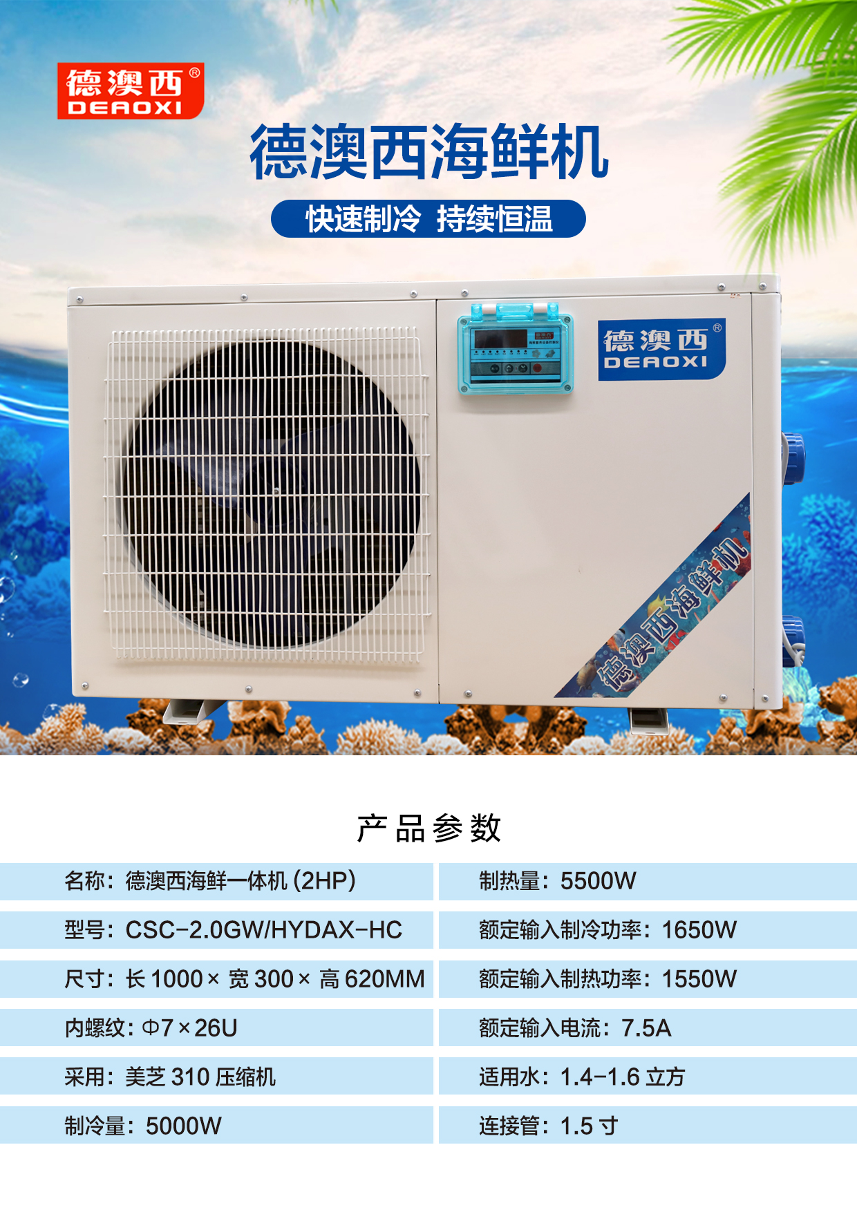 德澳西海鲜一体机2HP CSC-2.0GW/HYDAX-HC
