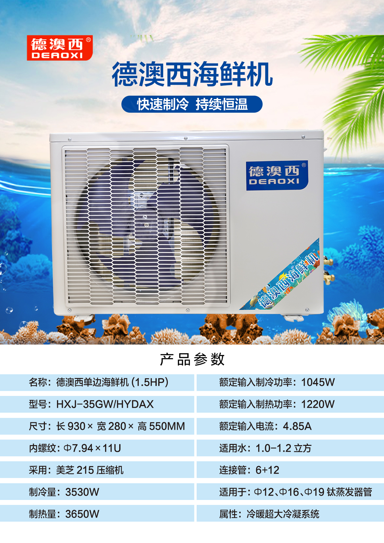 德澳西单边海鲜机1.5HP HXJ-35GW/HYDAX