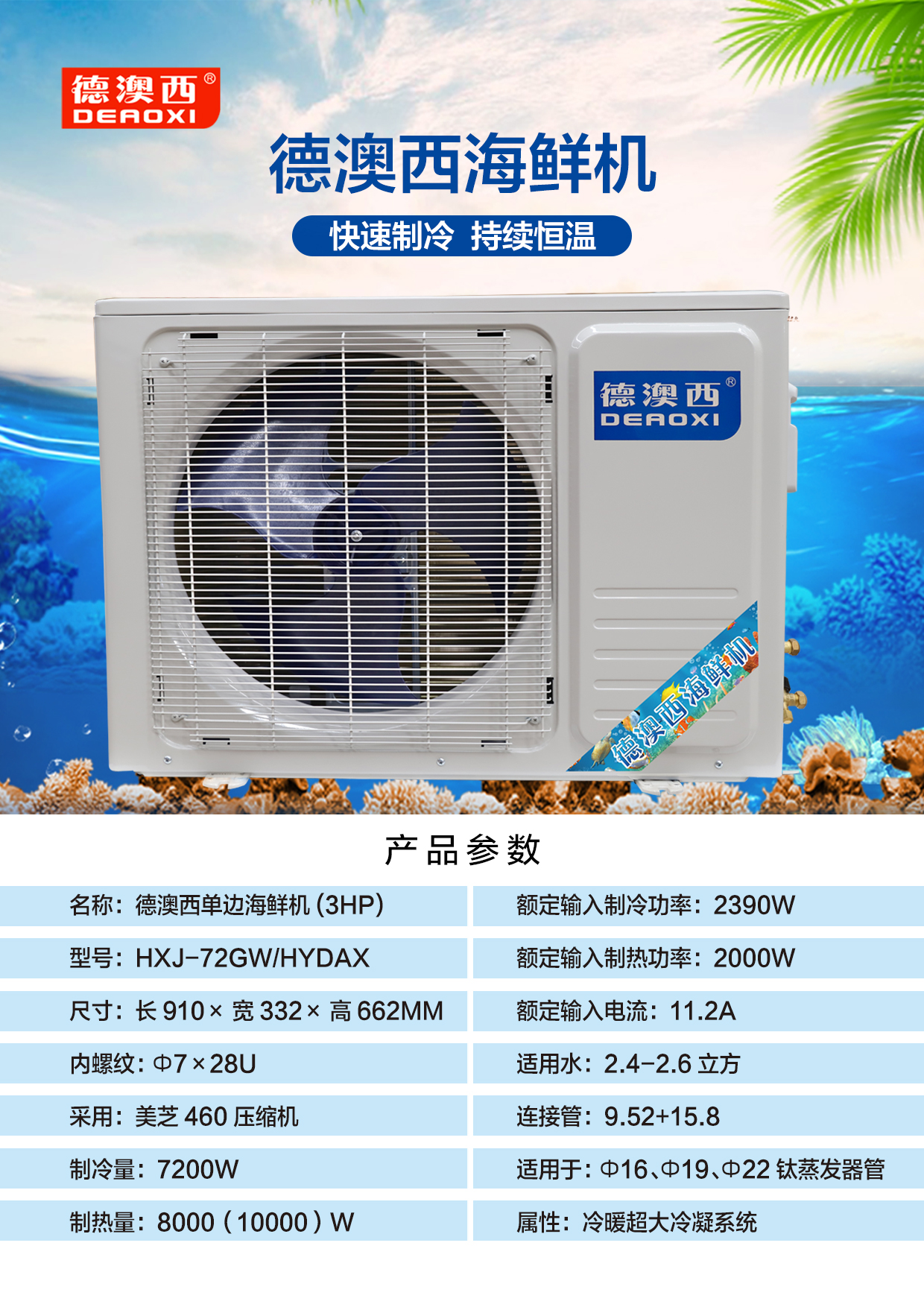 德澳西单边海鲜机3HP HXJ-72GW/HYDAX